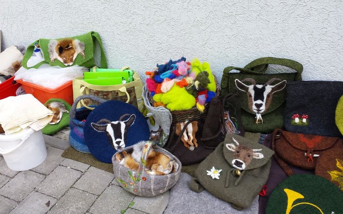 Unter Anleitung von Anne Waizmann und Heike Wittmachen haben Jägerinnen und Jäger auf der Messe in Offenburg die Möglichkeit, ein Sitzkissen zu filzen.