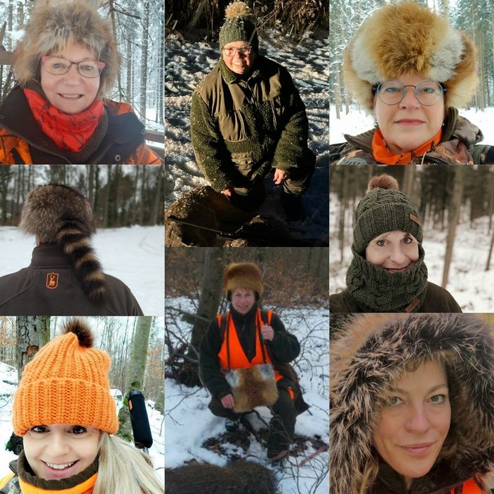 Jägerinnen präsentieren hier sehr gerne ihre Kopfbedeckungen und tragen auch im Alltag flotte Accessoires von Fellwechsel aus nachhaltiger, tierschutzkonformer Jagd.