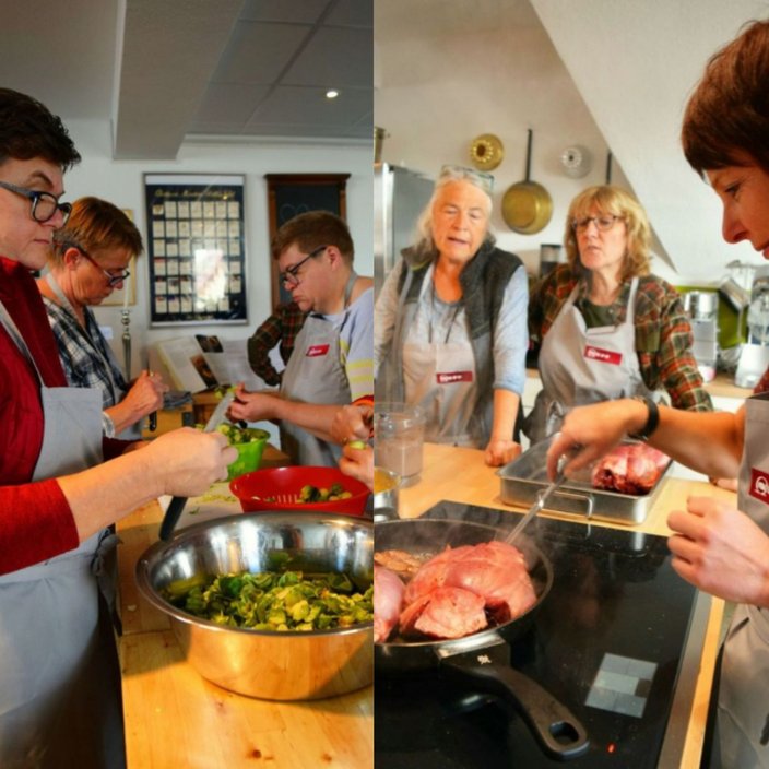 Die Teilnehmer hatten allesamt bereits Kochkenntnisse mitgebracht. Jeder konnte seine eigene Arbeitsweise mit derjenigen des Profikochs abgleichen sowie einzelne Tricks und Kniffe für den eigenen Küchenalltag abschauen. Herr Fischer zeigte die Handgriffe auch