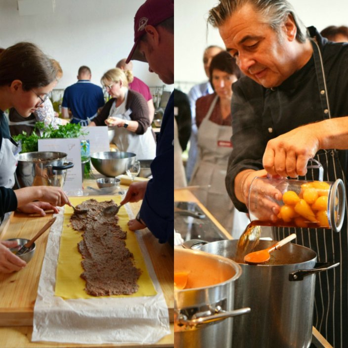 Danach durften die Teilnehmer praktisch mithelfen: Es wurde Gemüse geputzt sowie Zutaten für das Amuse-Gueule und die Füllung für die Wildmaultaschen vorbereitet. Hierfür fanden